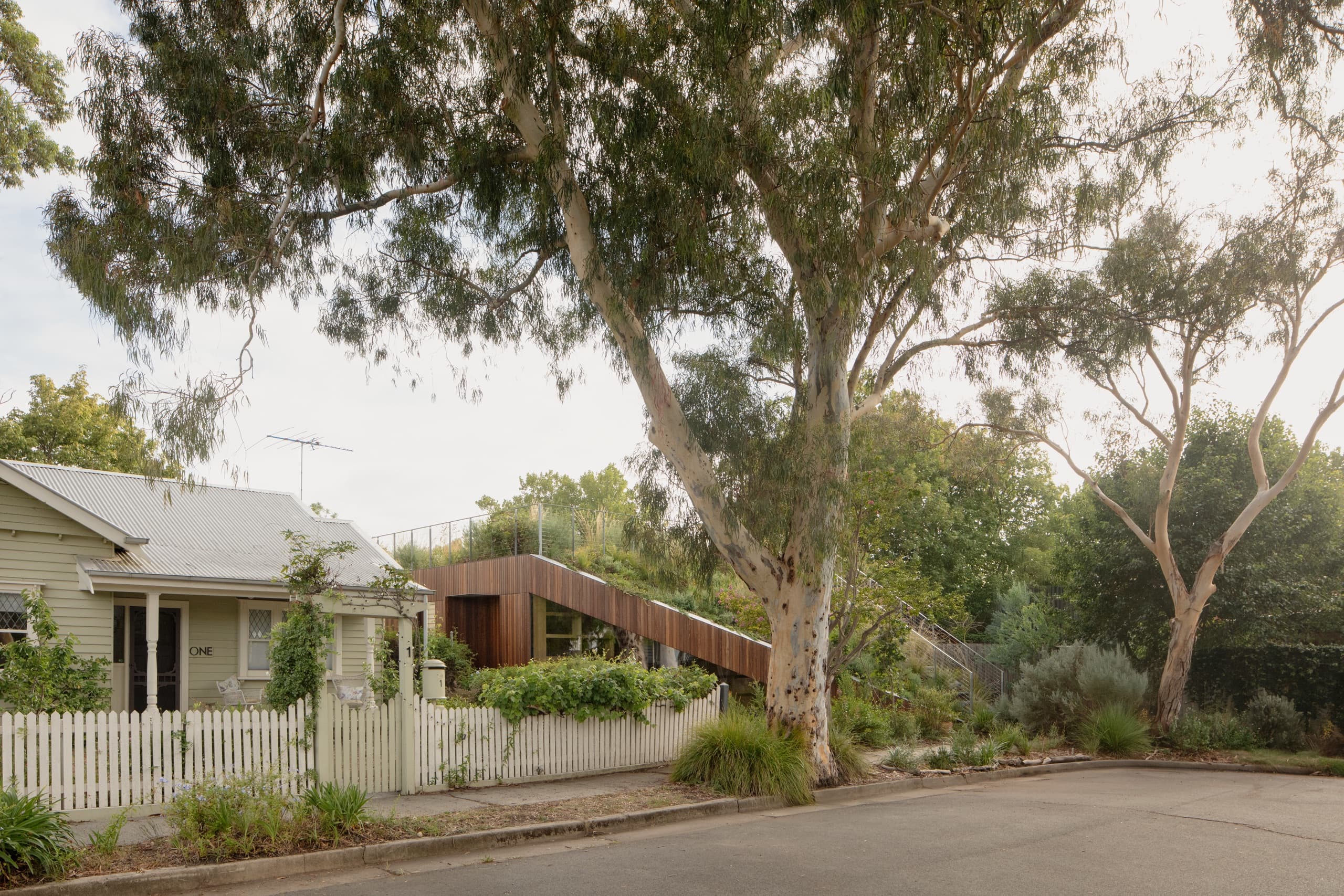 The project replaces a structurally compromised two-storey dwelling that was both spatially inefficient and visually overbearing within a streetscape of modest, single-storey houses. The clients, a couple with three young children, sought a larger garden, an environmentally responsive home, and a stronger connection to the cul-de-sac, which transforms each afternoon and weekend into a lively communal space animated by neighbourhood children.