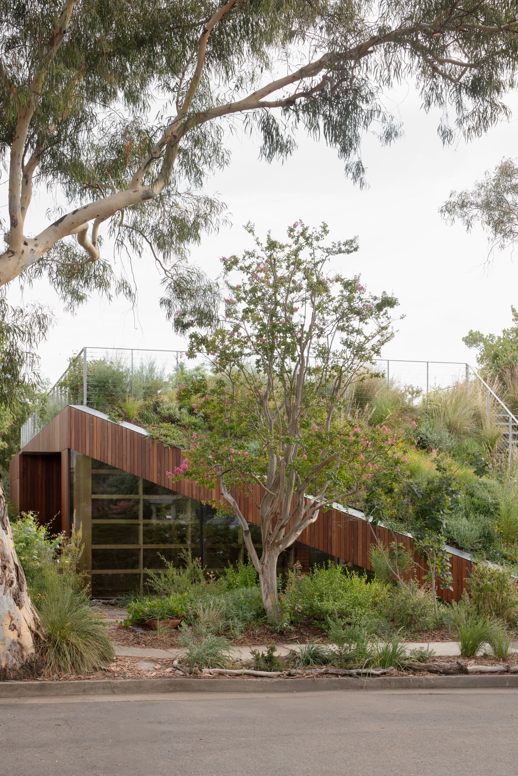 The Bank Street House draws on the lineage of landform architecture, from Adalberto Libera’s Villa Malaparte to Barry Marshall’s Phillip Island House, yet without monumentality. Instead, it nestles quietly into its suburban context, prioritising community, sustainability, and spatial richness over scale.