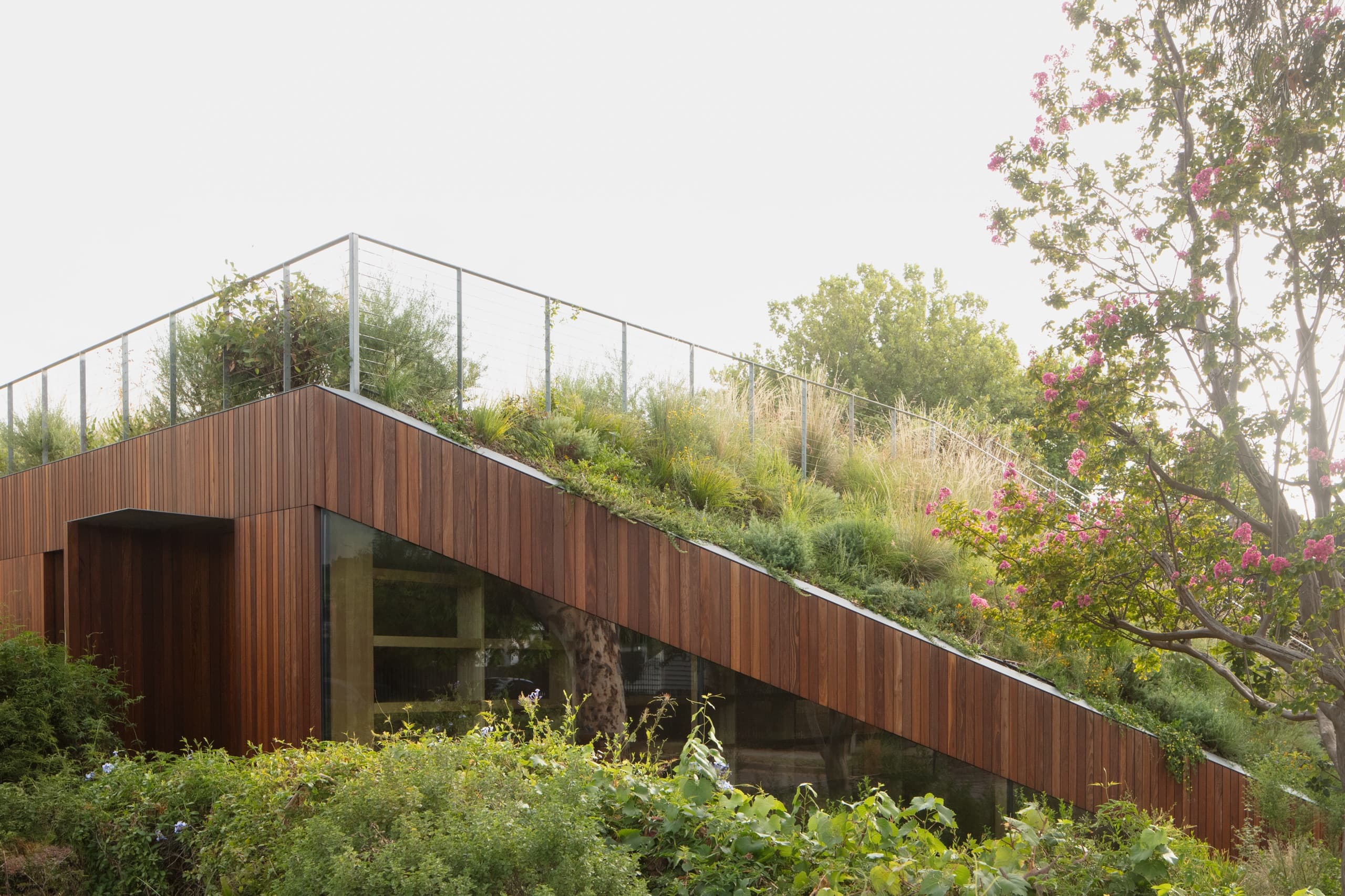 In response, the new house is a compact, single storey dwelling with a large, habitable green roof that effectively doubles the site’s usable outdoor space. From above, the entire site now reads as a continuous, expansive garden.
