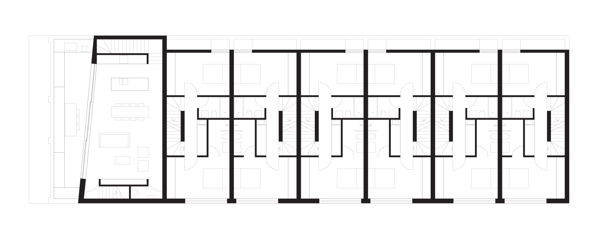 The site occupies a transitional space between the dense commercial development of Brunswick Street and the largely single-storey domestic Victorian and Edwardian streetscape of Greeves Street. A series of morphological manoeuvres allows the built form to mediate these conditions, with an outcome that is both contextually relevant and architecturally coherent.