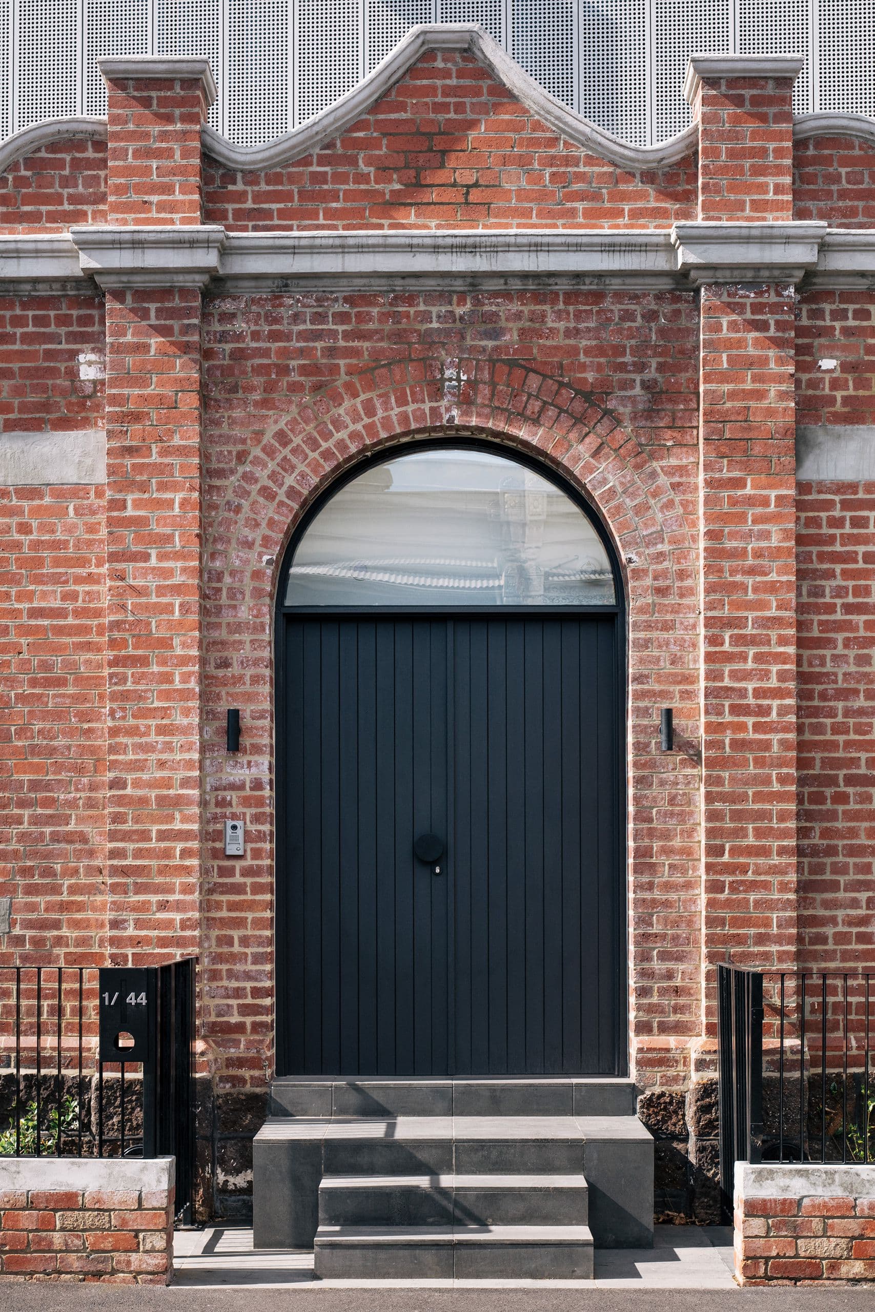 The site condition, defined on three sides by street and laneway frontages, provided the opportunity for full occupation of the ground plane. A simple brick rectilinear form introduced behind the retained primary heritage façade acknowledges the scale of the original fabric and continues its formal logic to ground the project with a robust base.