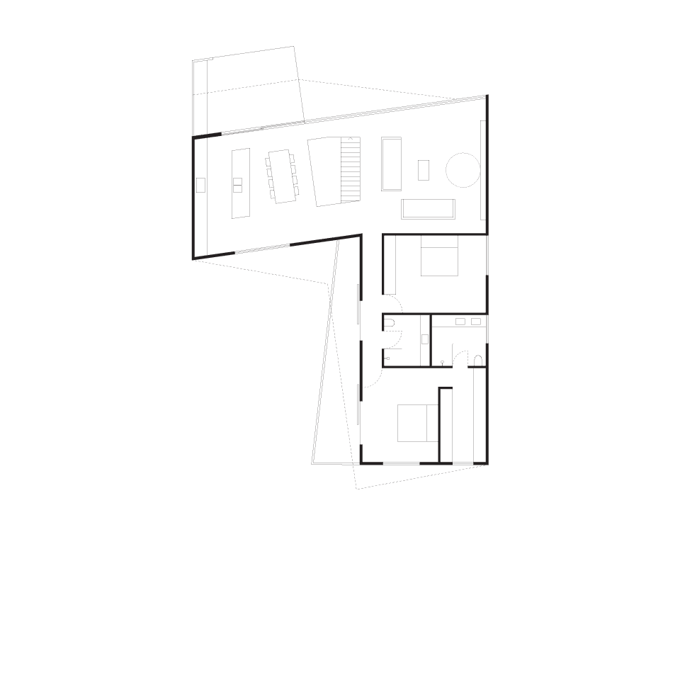 Defined by the complex overlapping geometries of its constituent layers, careful detailing, and rich natural materials, this new home combines subtle moments with complex geometry to create an architecture of spatial and formal drama.